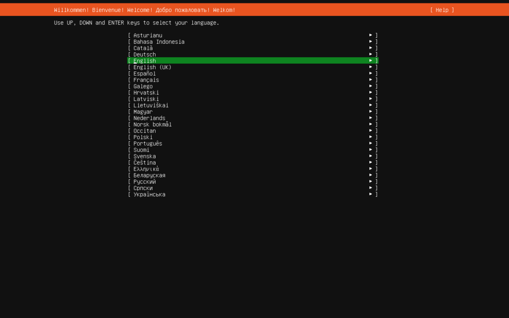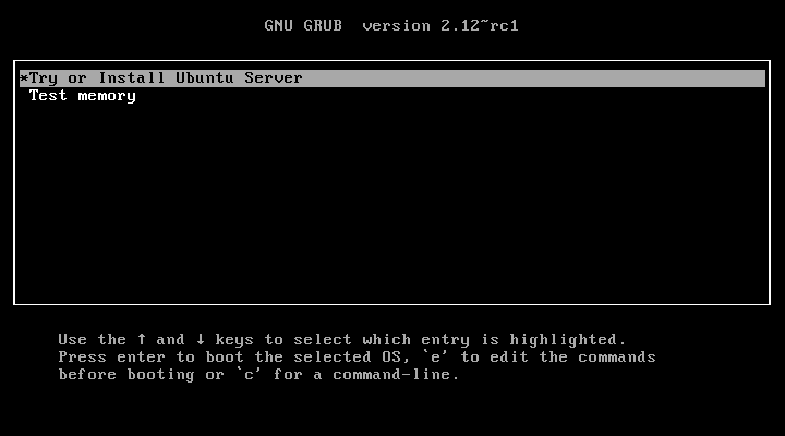 Makineyi başlattığımızda ilk olarak böyle bir ekran karşımıza çıkıyor. Ok tuşlarını kullanarak Try or Install Ubuntu Server seçeneğine gelerek Enter’a basıyoruz ve kurulum başlıyor.