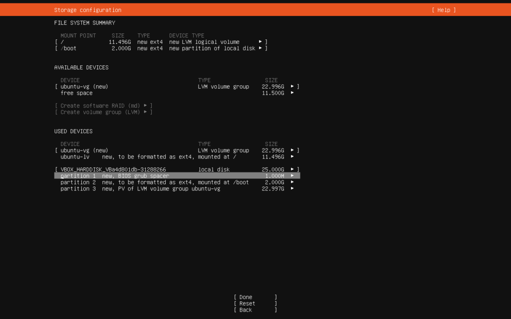 Sonraki adımda sistem dosyalarının (“/”) ve boot (“/boot”) olması için gerekli dosyaları için otomatik alan tanımadığını görüyoruz. Aşağıda ise ne kadar boş alan kaldığını görebiliyoruz. İsterseniz bu alanlara ekleme veya çıkartma yapabilirsiniz. Ya da belli bir klasöre ait yeni alan oluşturabilirsiniz.