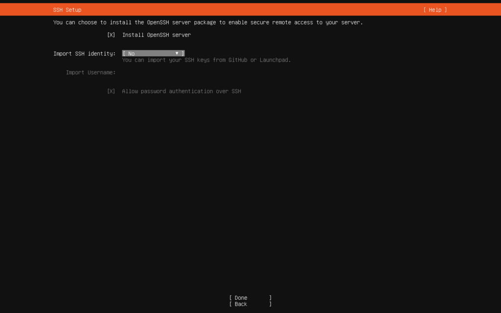 İlerde kurulumla uğraşmamak için burada Install OpenSSH server seçeneğini işaretleyip devam ediyoruz.