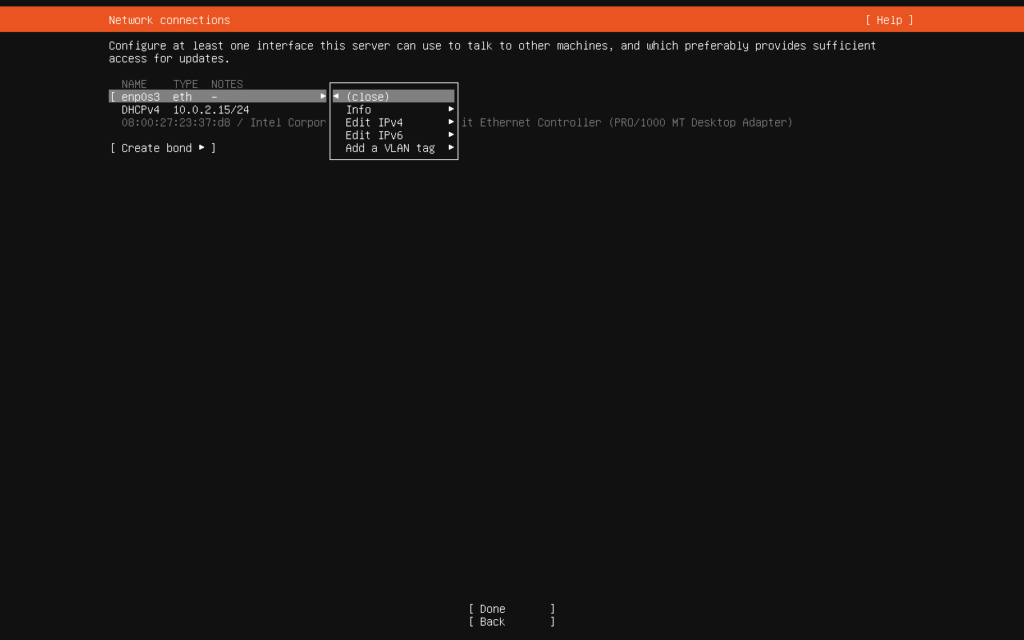 Bunun için ok tuşları ile network kartımızın üzerine gelip enter’a basıyoruz ve açılan sekmede Edit IPv4 seçeneğini seçiyoruz.